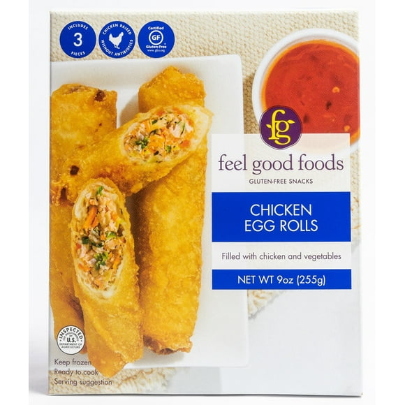 Up to 7 cash back Feel Good Foods Gluten-Free Vegetable Egg Rolls 9 oz Box Frozen Feel Good Foods Gluten-Free Chicken Egg Rolls 9 oz Box Frozen 678. Preheat air fryer to 400 degrees f optional. 3 pieces and 2 teaspoons sauce 88 g 170 calories 7 g fat 2 g saturated fat 590 mg sodium 20 g carbs 1 g fiber 3 g sugar 7 g protein.